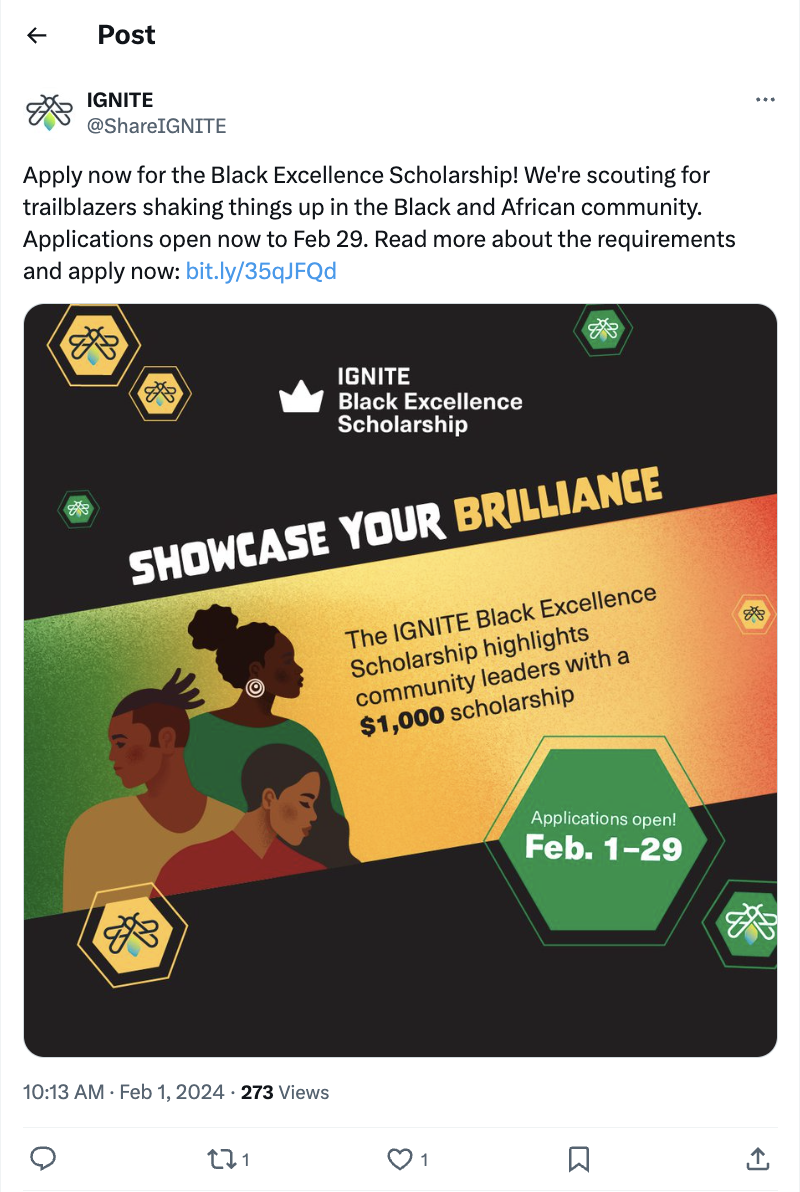 Project Objective: Create graphics to inform black students of a scholarship opportunity.