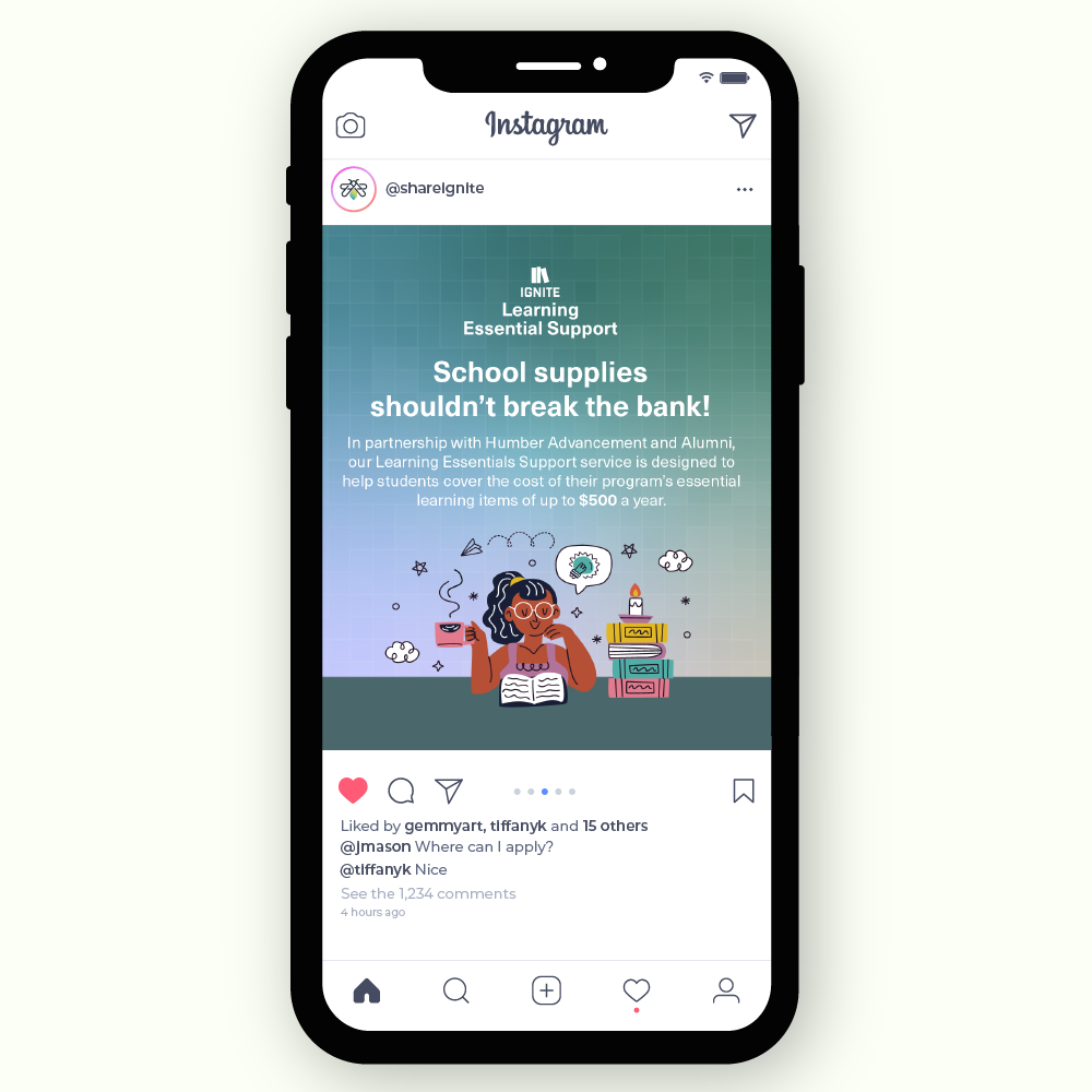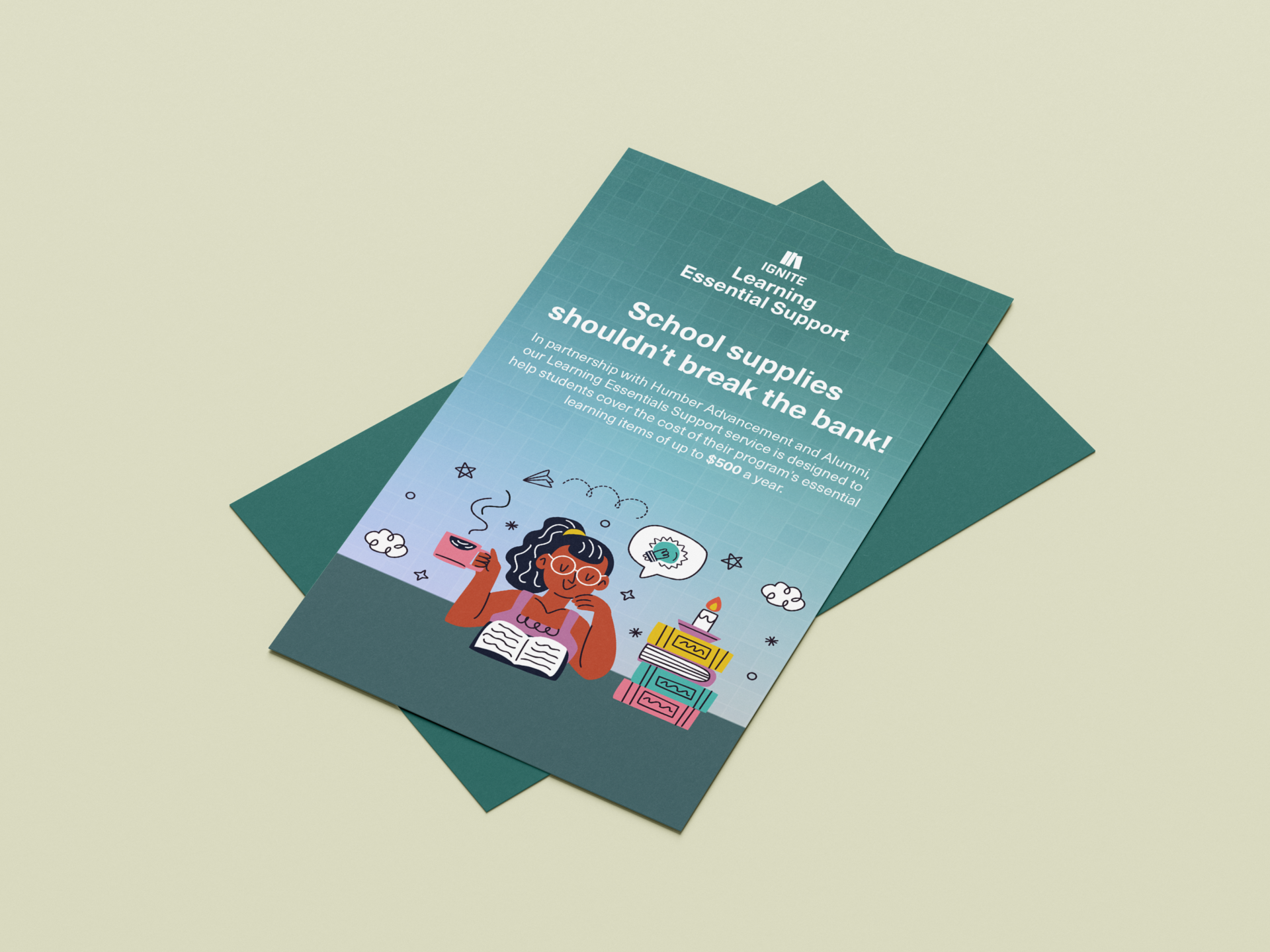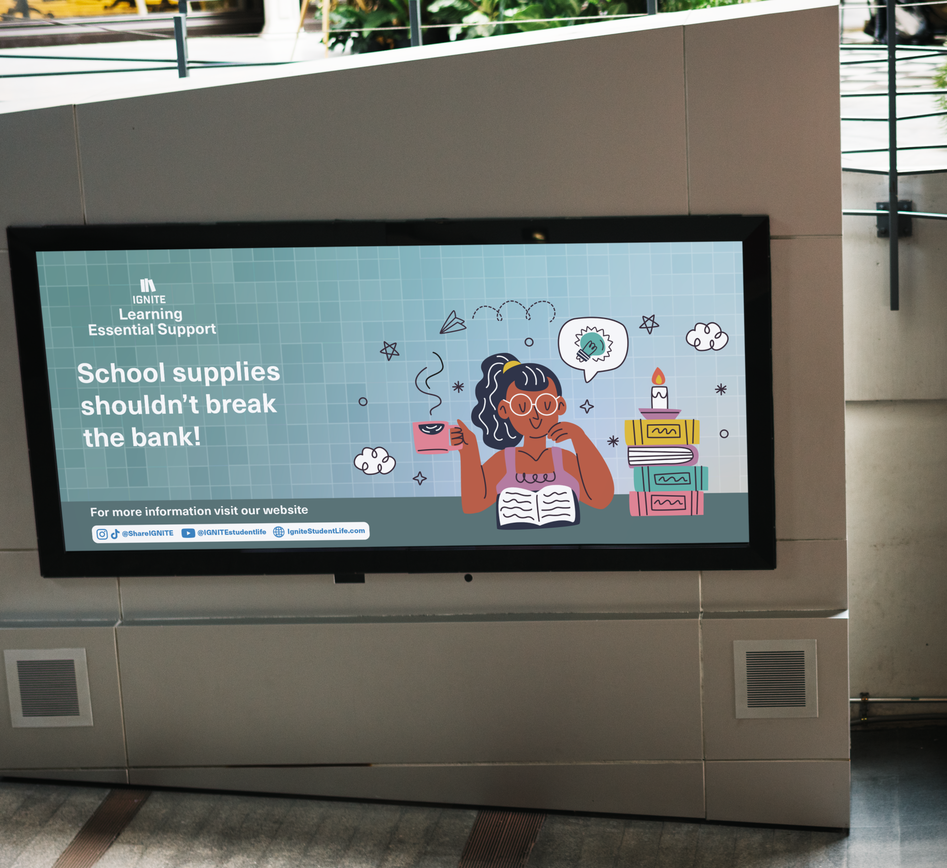 Project Objective: Create graphics to inform students of support for program-related essential items.